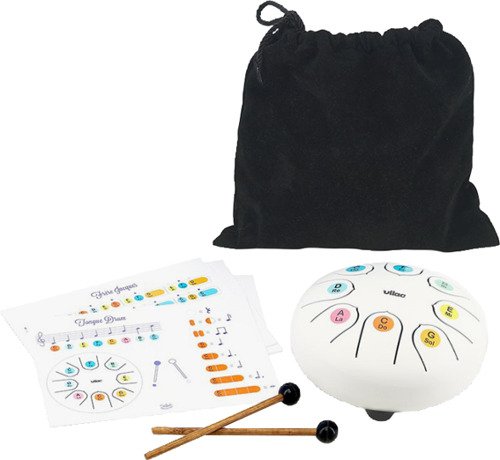 Musik berührt, beruhigt und verbindet. Das Singen im Morgenkreis kann zu einem geschätzten Ritual werden, das den Kindern Sicherheit und Struktur gibt. Lassen Sie Ihre Klasse die Lieder auf der Zungentrommel aus hochwertigem Metall begleiten. Jede Metallzuge erzeugt einen einzigartigen Klang. Die Zungentrommel ist im C-Dur gestimmt und wird zusammen mit Notenblättern geliefert, damit die Kinder spielerisch an einfache Melodien herangeführt werden können. Auch die Beziehung zwischen den von der Zungentrommel erzeugten Klängen und der klassischen Notation (C-Tonleiter) sowie die Entsprechung mit der Dauer der Noten und dem Rhythmus (Achtelnoten, Viertelnoten, weisse Noten usw.) wird verdeutlicht.