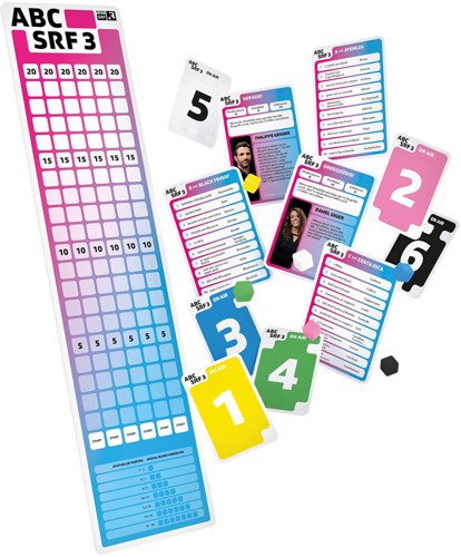 Das ABC SRF 3 im neuen Design bietet neu zwei Spielvarianten (Original und On-Air), XL-Fragekarten mit grösserer Schrift und den Original-Gugger-Timer via QR-Code.