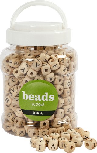 Perles à lettres en bois 9/9/9 mm, 185 g