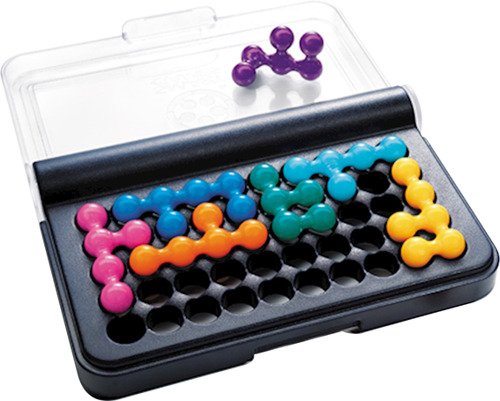 Contenu: plateau de jeu compact avec couvercle, 10 pièces de puzzle double face, 1 livret avec défis et solutions