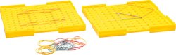 Géoplan à deux faces jaunes Sur une des faces, 5 x 5 pointes sont agencées en carré et, sur l’autre, 24 pointes sont disposées en cercle, plus 1 dans chaque coin. Les ...